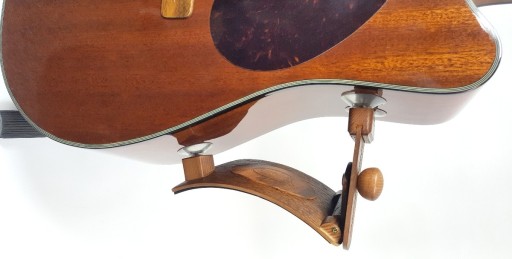 Łączy się go z gitarą za pomocą trzech przyssawek gumowych. Posiada regulację wysokości oraz kąta ustawienia gitary, co pozwala dopasować go idealnie do sylwetki każdego, nawet najbardziej wymagającego gitarzysty. Dzięki temu ustawiasz odpowiednio gitarę podczas, gdy Twoje stopy pozostają ułożone płasko na podłodze uniemożliwiając garbienie się. To poprawia ogólną postawę, redukując skręcenie i garbienie tułowia towarzyszące użyciu podnóżka.