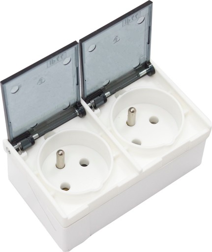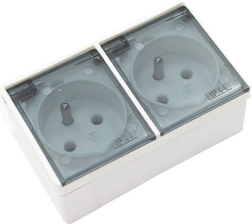 ДВОЙНАЯ РОЗЕТКА НА ПОВЕРХНОСТИ КОНТАКТНАЯ ГЕРМЕТИЧНАЯ IP44 OSPEL ПОЛИРОВКА