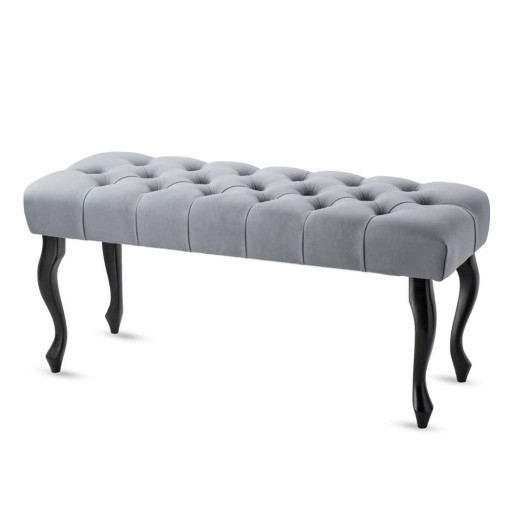 Ręcznie robiona ławka w stylu klasycznym, posiada grube, pikowane siedzisko, pokryte wysokiej jakości materiałami.