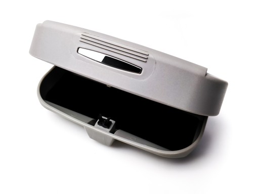 Uniwersalny schowek na okulary, instalowany do zasłonek przeciwsłonecznych.