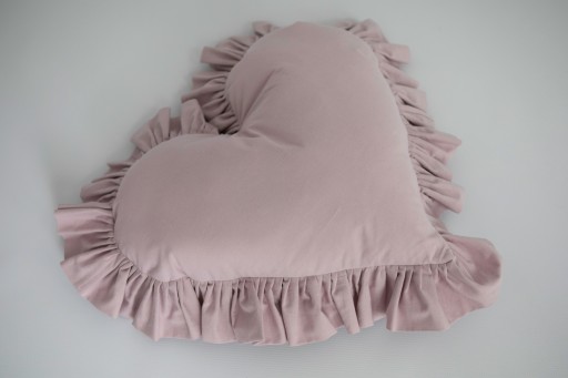 Poduszka dekoracyjna z falbanką szyta razem z wypełnieniem.