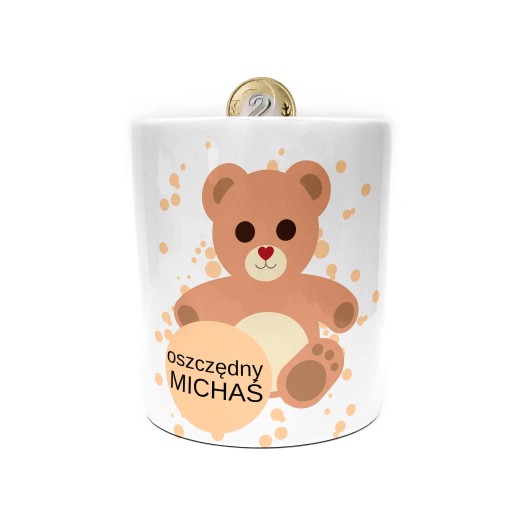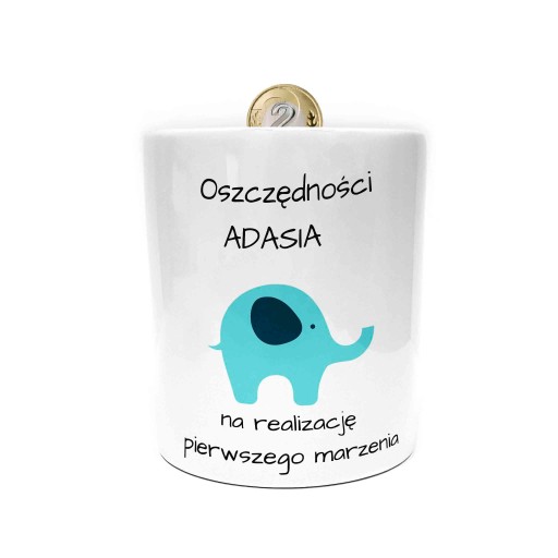 Doskonały produkt na prezent, na skarbonce możemy umieścić wybrane przez Ciebie imię.