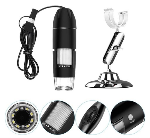 Mikroskop cyfrowy USB z oświetleniem LED i przybliżeniem 1600x