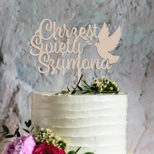 Topper na tort Chrzest Święty z imieniem i gołąbkiem