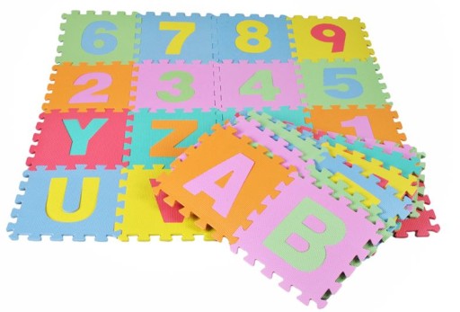 Mata przyda się podczas zabawy, malowania, rysowania czy lepienia z plasteliny, oraz do wyczynów sportowych. Kolorowe puzzle z literkami i cyferkami dostarczą wiele godzin wspaniałej zabawy. Nauka poprzez zabawę - pomogą w nauce literek, rozwinięciu koncentracji, percepcji wzrokowo – ruchowej i umiejętności logicznego myślenia.