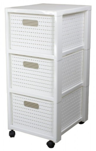 Regał z 3 szufladami Rotho Country biały tower wieża wyposażona w kółka