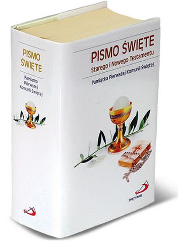 Najnowszy przekład Pisma Świętego małego formatu z komentarzem opracowany przez Zespół Biblistów Polskich z inicjatywy Towarzystwa Świętego Pawła. Teraz do nabycia w pięknej obwolucie na wyjątkową okazję Pierwszej Komunii Świętej.