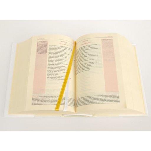 Słowa Boga kierowane do ludzi są zawsze aktualne i zawsze skuteczne. Ale by o tym się przekonać, trzeba zaprzyjaźnić się z Biblią i często do niej sięgać. Słowem, uczynić ją najlepszym przyjacielem swoim i swojej rodziny. I mieć ją zawsze przy sobie, do czego zachęca poręczny format tej edycji, a także przyciągająca wzrok biała oprawa. Do atutów proponowanego przekładu Pisma Świętego z komentarzem, opracowanego przez Zespół Biblistów Polskich z inicjatywy Towarzystwa Świętego Pawła, należy maksymalna wierność tekstowi oryginalnemu. Oczywiście, z uwzględnieniem w tłumaczeniu zasad współczesnego literackiego języka polskiego.