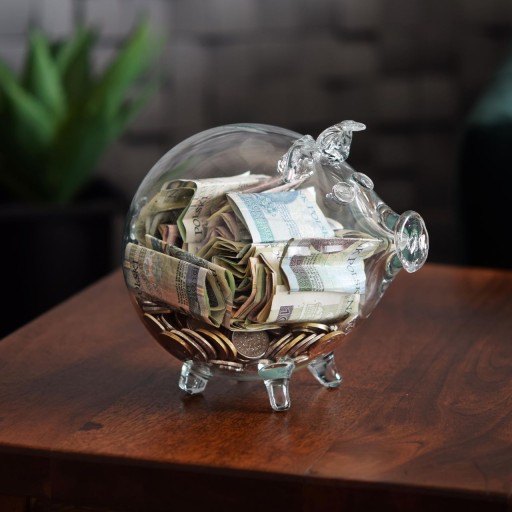 W naszym przypadku bezbarwna świnka pozwoli pięknie eksponować odkładane pieniążki.