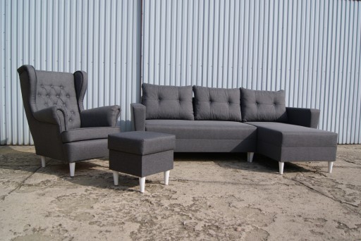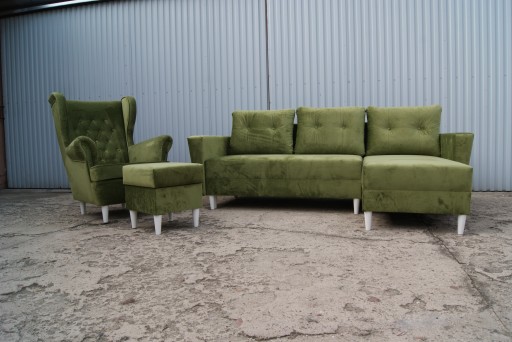 Przedmiotem ogłoszenia jest narożnik : KARL + FOTEL USZAK +PODNÓŻEK (PUFA) z pojemnikiem