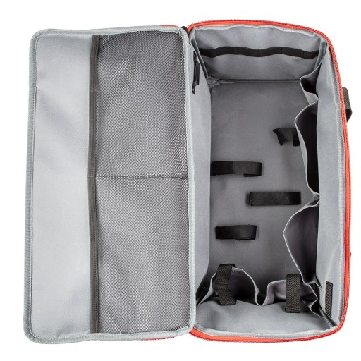 - Akumulatory, jak i inne elementy można zabezpieczyć przed przemieszczaniem za pomocą dodatkowych pasków na rzep na dnie torby,