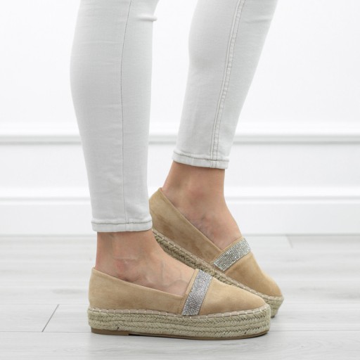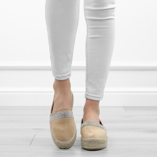 BEŻOWE ESPADRYLE CYRKONIE PLATFORMA XY801 r.39
