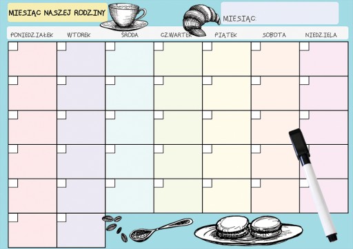 Planer magnetyczny na lodówkę (miesięczny) + mazak suchościeralny