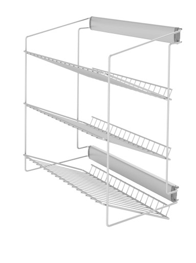Półka na obuwie trzypoziomowa z prowadnicami łożyskowymi pełnego wysuwu z dociągiem.