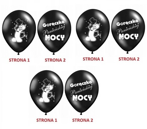 - 5 balonów dwustronnych ( 3 czarne, 2 różowe)