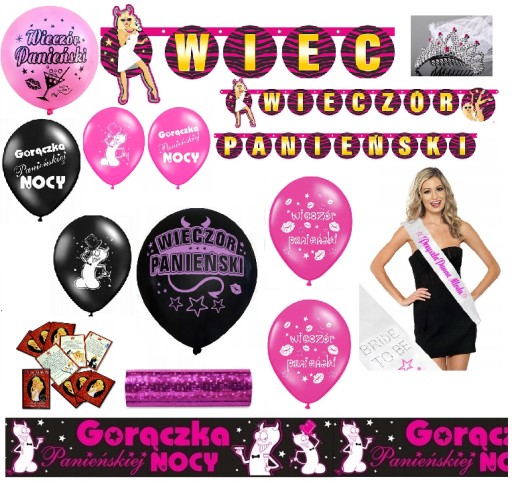 Zestaw na Wieczór Panieński w kolorystyce różowo - czarnej