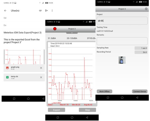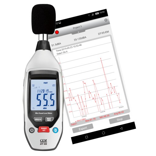 Sonometr służący do pomiaru głośności, w połączeniu ze smartfonem może pełnić funkcję rejestratora poziomu głośności. Użytkownik w łatwy sposób ustawia czas oraz częstotliwość pomiarów, wyniki prezentowane są na wykresie w stanie rzeczywistym na ekranie telefonu. Użytkownik może wyeksportować wykres jak i plik xls z dokonanej rejestracji.