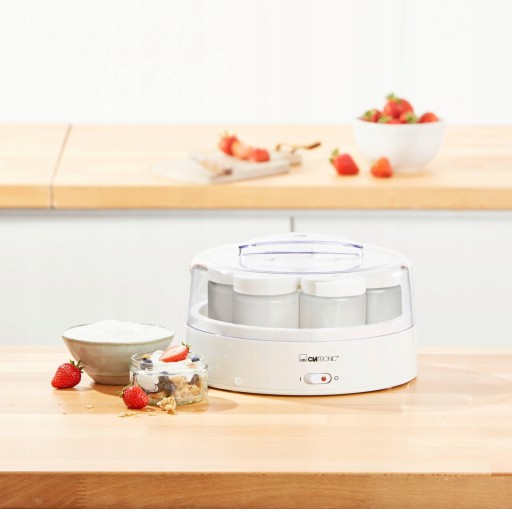 Jogurtownica zapewnia proste przygotowanie do 1,1 litra jogurtu. Posiada podświetlany wyłącznik/włącznik oraz przezroczystą pokrywkę. Urządzenie składa się z 7 praktycznych szklanych słoiczków z zakręcanymi przykrywkami o zawartości 160 ml każdy.