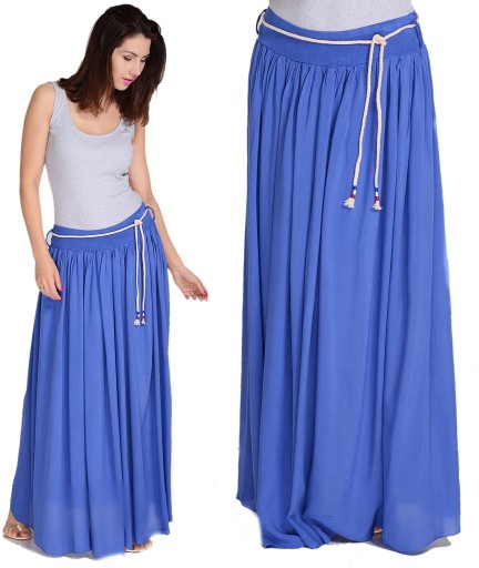 OPIS PRODUKTU Włoska Spódnica MAXI, UNIKATOWY projekt ! Model z wysokogatunkowej, zwiewnej tkaniny - bardzo lekkiej, przyjemnej i miłej. Pas bawełniany z wygodną gumką - idealnie dopasowuje się do sylwetki. GRATIS pasek w stylu BOHO, pleciony sznureczek - wykończony w marynarskim stylu. Model fantastyczny pasuje do każdej stylizacji idealny na letnie dni. Wysoka JAKOŚĆ ! Luźna Długa spódnica