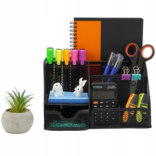 Jego największą zaletą jest zapewnienie porządku. Chaos na biurku to częsta przyczyna opóźnień. Dzięki wielokomorowemu przybornikowi odnajdzie się spokój, a długopisy, nożyczki, czy ołówki będą zawsze w jednym miejscu.