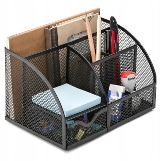 Trzymane luzem spinacze, karteczki leżące przed monitorem, długopis przy podkładce pod mysz - to rozwiązania, które sprawdzają się tylko na chwilę. Dzięki metalowemu przybornikowi na biurko wszystko będzie miało swoje miejsce i nie zginie po jednym ruchu. Niesamowita wygoda, jaką zapewnia, wpłynie niezwykle pozytywnie na jakość wykonywanej pracy, czy też nauki.