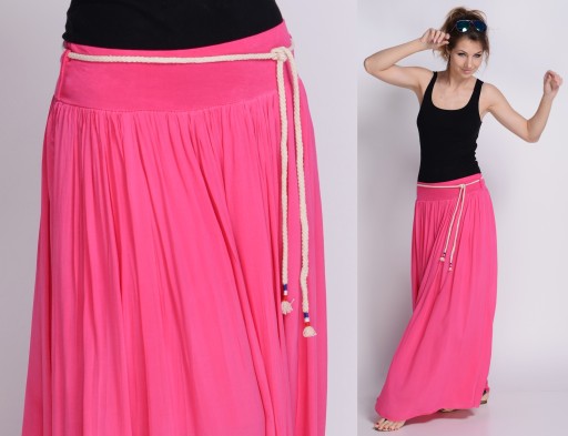 OPIS PRODUKTU Włoska Spódnica MAXI, UNIKATOWY projekt ! Model z wysokogatunkowej, zwiewnej tkaniny - bardzo lekkiej, przyjemnej i miłej. Pas bawełniany z wygodną gumką - idealnie dopasowuje się do sylwetki. GRATIS pasek w stylu BOHO, pleciony sznureczek - wykończony w marynarskim stylu. Model fantastyczny pasuje do każdej stylizacji idealny na letnie dni. Wysoka JAKOŚĆ ! Luźna Długa spódnica