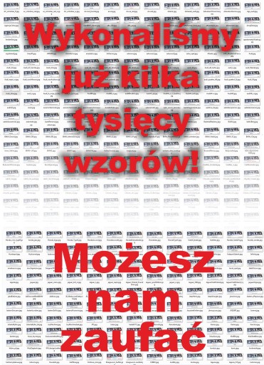 (Nie wykonamy małych detali i przejść tonalnych). Napis wykonywany jest poprzez naniesienie na ramkę folii monomerycznej wycinanej ploterowo. Przy większych ilościach nadruk wykonujemy sitodrukiem.
