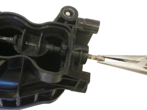 Usuń plastikowe cięgno łączące oś klap wirowych z nastawnikiem: