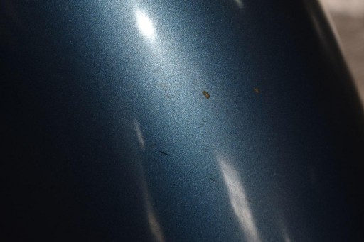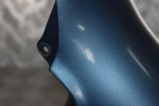 Błotnik używany w stanie dobrym, posiada nieduże zarysowania oraz odłamane jedno mocowanie, uszkodzenia widoczne na zdjęciach.