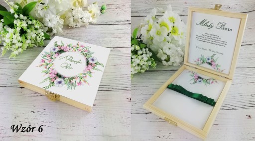 - Informujemy, że pudełka wykonane są z naturalnego drewna w związku z czym w miejscach, w których nie ma druku mogą występować niewielkie, naturalne przebarwienia, odcienie lub sęki. Nie stanowi to wady ponieważ jest to naturalna cecha produktu nadająca odpowiedniego uroku.