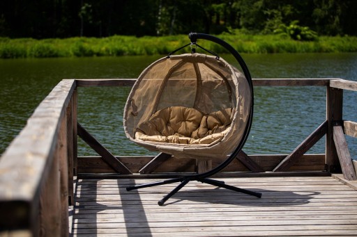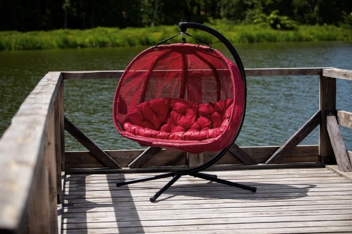 Huśtawka wykonana jest z metalu (pałąk) malowana jest proszkowo. Krzesło pokryte jest miękką bardzo trwałą siatką stosowaną do mebli ogrodowych (textilene). Textilene jest to materiał który jest miękki, dostosowuje się do ciała, nie odciska się na skórze. Dodatkowy komfort wypoczynku zapewnia nam duża miękka poduszka pod której spodem znajduje się dodatkowe wzmocnienie wykonane z grubej gąbki obszytej również materiałem. Fotel nadaje się do ogrodu na taras, działkę, balkon, jak i do pomieszczeń zamkniętych salonu sypialni itd. Dzięki otwartej konstrukcji zapewnia przewiewną formę, a ciekawy design nada interesujący wygląd każdej przestrzeni. Bardzo lekka konstrukcja, pozwala w szybki i wygodny sposób przenieść fotel w dowolne miejsce. Jeśli cenisz wygodę oraz wygląd to produkt właśnie dla Ciebie!