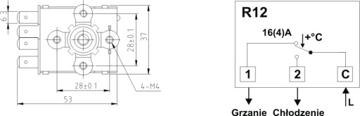 Termostat do zabudowy, jednofazowy, No: R12-5