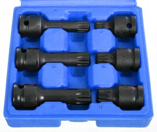 Zestaw kluczy udarowych spline stosowany w samochodach z grupy VAG, m.in VW LT, Transporter, Golf i Sharan oraz tylne zaciski hamulcowe Porsche Cayenne