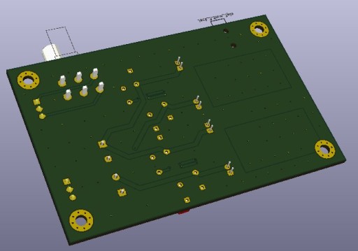 Płytka dwustronna, metalizacja otworów, soldermaska, wymiary płytki 88x57,5 mm.