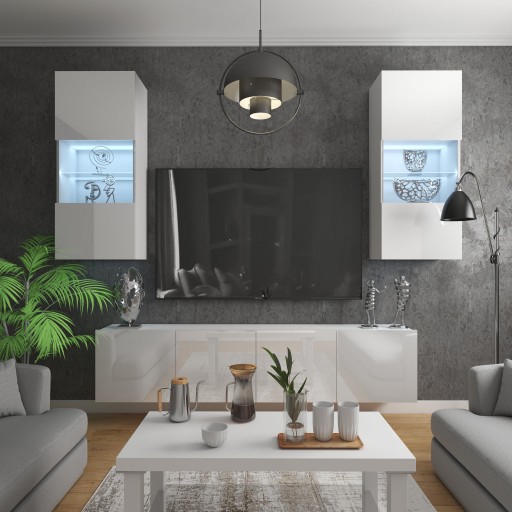 - Uwaga!!! Cena zestawu nie uwzględnia oświetlenia LED, telewizora oraz wyposażenia dekoracyjnego mebla