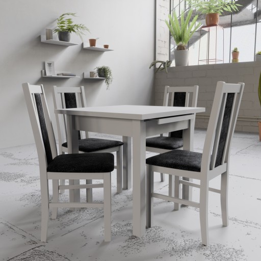 КОМПЛЕКТ РАСШИРЯЕМОГО КВАДРАТНОГО СТОЛИКА И 4 СТУЛЬЕВ