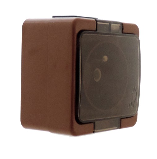 ГЕРМЕТИЧНАЯ РОЗЕТКА НАВЕРХНЕГО МОНТАЖА 1x КОРИЧНЕВАЯ IP44 ДЫМЧАТАЯ