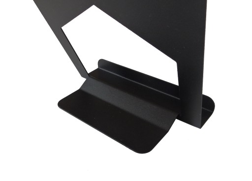 Stojak został wykonany poprzez wycinanie laserowe arkusza blachy na precyzyjnym światłowodowym laserze CNC. Krawędzie zostały zagięte nowoczesną krawędziarką CNC, co pozwoliło uzyskać perfekcyjnie odwzorowany kontur oraz idealnie gładkie krawędzie z dokładnością do 0,01 mm.