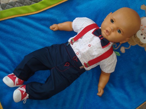 - SPODNIE GRANATOWE Z CZERWONĄ NITKĄ TYPU SLIM W KANCIK GUMKA W PASIE Z GUZICZKAMI LUB BEZ