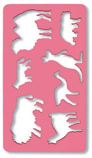- Szablon zawiera kontury zwierząt pogrupowane tematycznie.