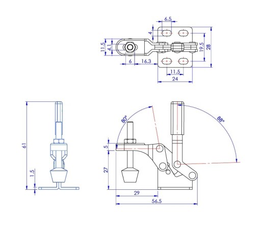 - kąt otwarcia: 80°