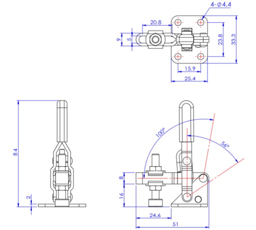 Uniwersalny docisk montażowy 101A zapewnia siłę docisku 50 kg i zasięg roboczy 22 mm.