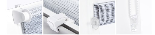 - prowadnice żyłkowe - zapobiegają odchylaniu się rolety przy uchylonym oknie