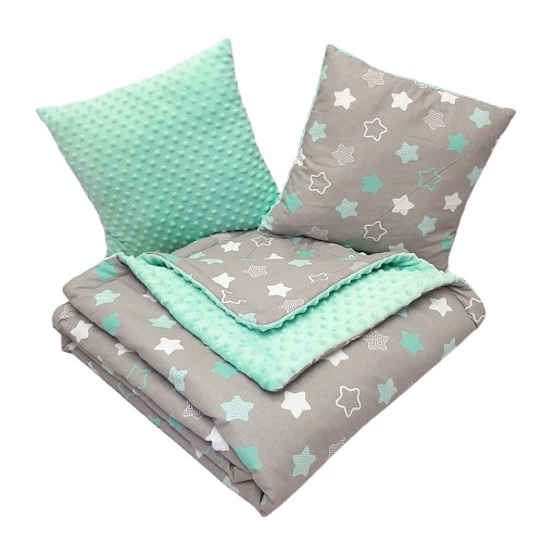Dodatkowo 2 poduszki 40x40cm, (minky+bawełna) z wkładem z kulek sylikonowych antyalergicznych.