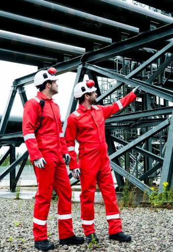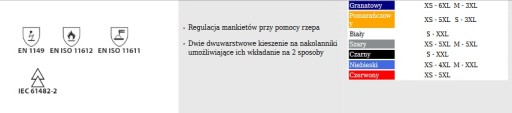 *** Wszyta metka na ramieniu z normami odzieży trudnopalnej i antystatycznej