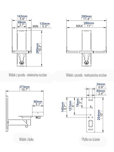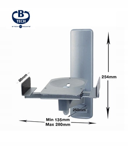 Uchwyt pozwala na zamocowanie głośnika o szerokości 135 - 280 mm i maksymalnej wadze 25kg, a system regulacji zapewnia regulację o 360° oraz góra / dół 7°.