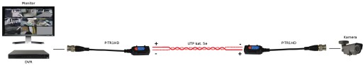 P-TR1HD to zestaw pasywnych urządzeń do transmisji sygnału video za pomocą skrętki komputerowej. Elementy te zapewniają dopasowanie impedancji kabla koncentrycznego (75Ω) do impedancji przewodu symetrycznego (100Ω).