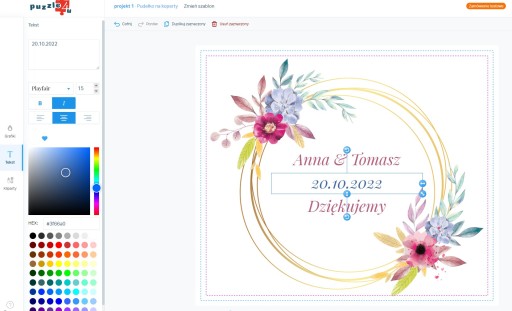- W dedykowanej grafice, która znajduje się na froncie pudełka - personalizacja tekstu, w kreatorze dostępnych 35 różnych czcionek