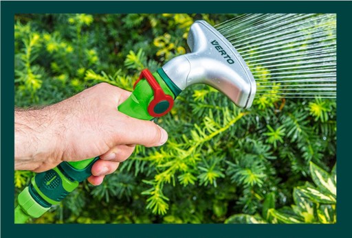 Zraszacz pistoletowy szeroki VERTO (nr ref. 15G708) z płynna regulacją strumienia za pomocą kciuka.