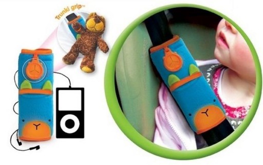 Nakładka posiada specjalny uchwyt, dzięki któremu zaczepić można pluszaka czy chusteczkę, a wygodna kieszonka pozwoli ukryć wewnątrz odtwarzacz mp3 - który umili malcowi podróż.